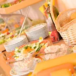 Οι επισκέπτες θα απολαμβάνουν κάθε μέρα πλούσιο πρωινό με μπουφέ. Οι επιλογές για φαγητό περιλαμβάνουν επίσης το Fitschen am Dorfteich, που βρίσκεται 500 μέτρα από το κατάλυμα.